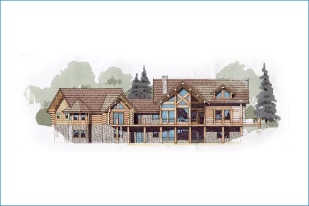 BRITISH COLUMBIA LOG HOUSE - REAR VIEW